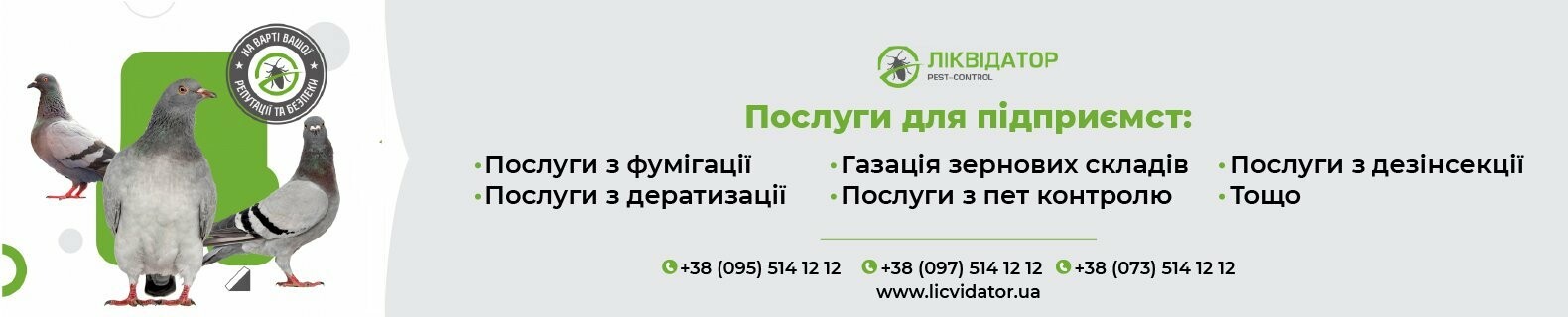 - Послуги з пест контролюДотримання необхідних санітарних норм - це обов'язок кожного підприємства.